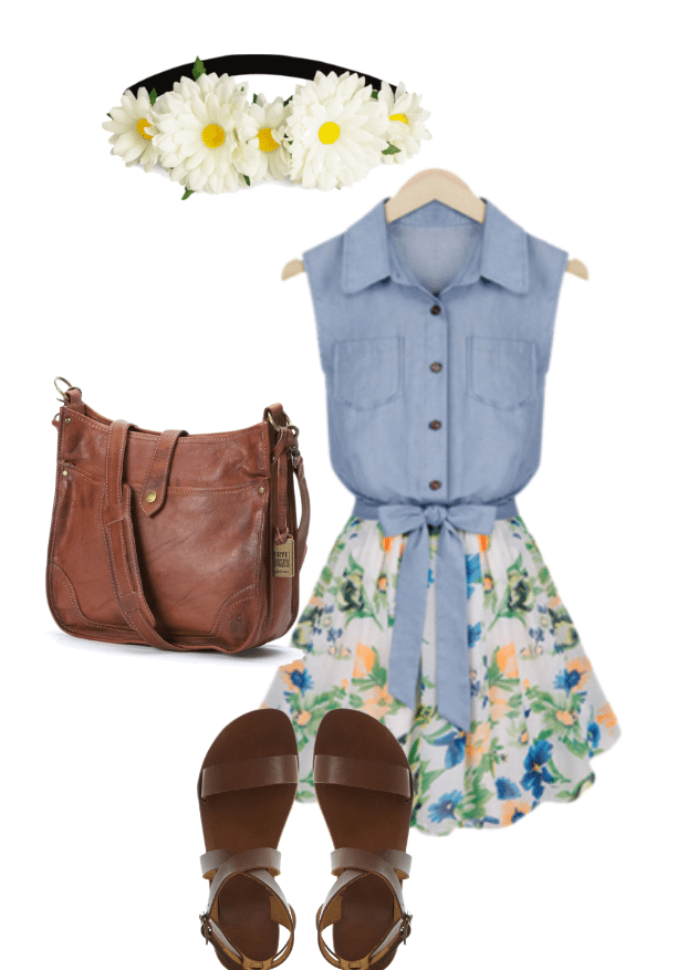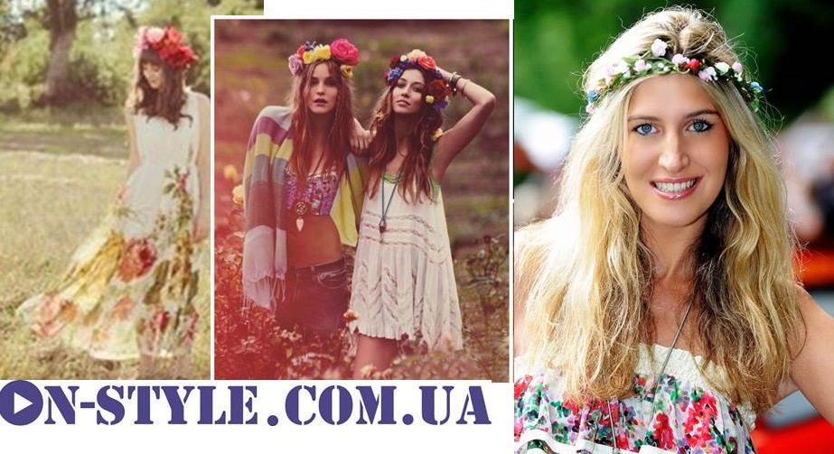 Натуральный стиль характерен простыми материалами, деним, лен, хлопок. Только в этом варианте рядом с цветами ободка будут уместны и другие цветы из принта ткани. Главным условием является максимальная натуральность цвета и форм цветков. Рядом уместны простые аксессуары.