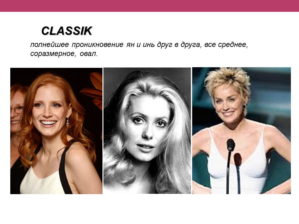 Примеры из мира звезд: Джесика Честерн, Шерон Стоун, Катрин Денев, Грейс Келли, Сибилл Шепард.