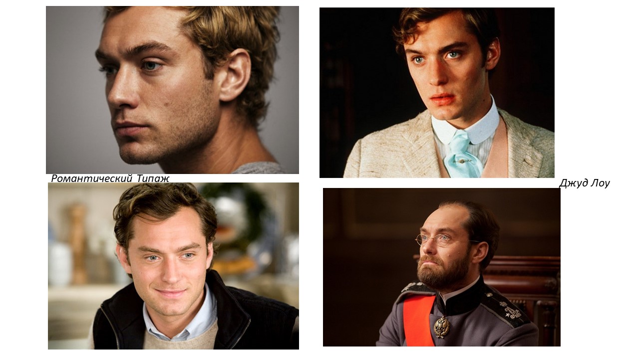 Романтический, нежный, эстетический, элегантный типаж. Это мужчины с мечтательным или по детски трогательным (чаще голубым) взглядом ( фото Бреда Пита прилагается), мягкими щеками, округлым подбородком, и достаточно чувственной линией губ.