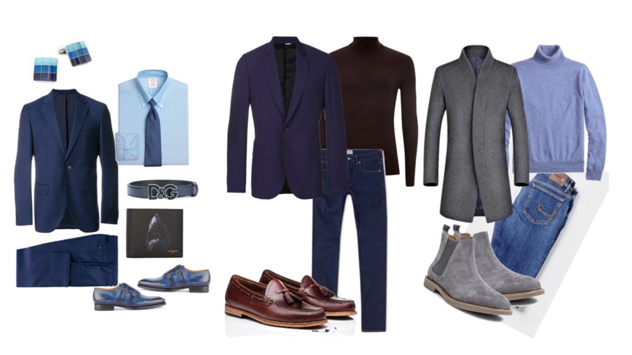 Цвета: Припыленные и светлые, цветовые комбинации слабо контрастные, мягко перетекающие и создающие сложный градиент. Хорошо вписываются в образ витиеватые принты на рубашках и галстуках, мелкие и округлые или сложная геральдика.