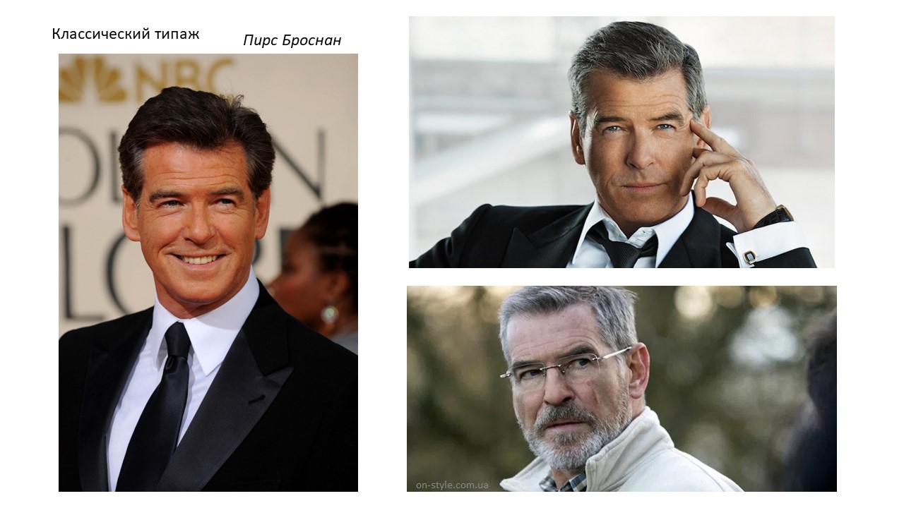Гармоничные, серьезные, размеренные, сбалансированные. Такая внешность почти подарок. Мне трудно подобрать яркое описание т.к. основа образа это баланс линий. Наверное, из за этой сбалансированности такие мужчины — идеальные шпионы. Так я объясняю большое количество мужчин классической внешности среди Бондов (Шон Коннери, Тимоти Далтон, Пирс Броснан) да и наш любимый шпион Штирлиц- Тихонов, тоже из этих.